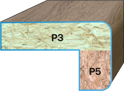 Alle TOPSET-Produkte bestehen aus einer Kombination von zwei P3 + P5. Tato kombinace zajišťuje vysokou pevnost, rozměrovou stabilitu a nízké bobtnání. P2 zásadně nepoužíváme.