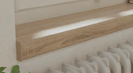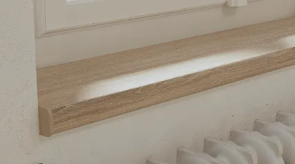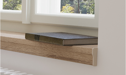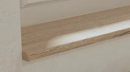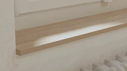 Die Fensterbänke sind aus ästhetischen Gründen gefertigt, aber in erster Linie dient sie dazu, das Eindringen von Feuchtigkeit in die freiliegende Spanplatte zu verhindern. Bei der Bestellung von Fensterbänken und im Einkaufsberater können Sie für jedes Profil aus den passenden Veredelungsoptionen wählen.